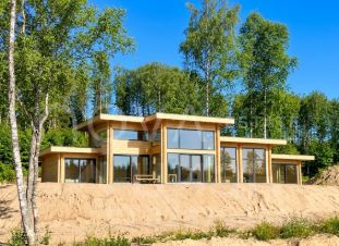 Представляем вашему вниманию домовладение, воплощающее идеал загородного отдыха и особое место для вашей души. Этот комплекс сооружений расположен на участке площадью 40 соток, окруженном зеленью плодовых и хвойных деревьев, ухоженным газоном и чарующими видами Суходольского озера. Основной дом общей площадью 448 кв. м выполнен из высококачественного клеенного бруса, построен в 2016 году. Пространство первого этажа наполнено светом и простором, двухсветная гостиная с камином и панорамным остеклением позволяет наслаждаться природными красотами круглый год. Кухня-столовая с выходом на террасу 100 кв. м, откуда открывается потрясающий вид на собственный участок и озёрную гладь, создавая неповторимую атмосферу домашнего тепла и гостеприимства. Четыре спальни, три санузла, гардеробная, постирочная и техническое помещение. На втором этаже мастер-спальня с гардеробной и санузлом. Вдохнуть аромат свежести озера и насладиться теплом русской традиции можно в бане КЕЛО площадью 120 кв. м. Окруженная живописными пейзажами, эта баня предлагает незабываемый опыт отдыха и релаксации благодаря своему панорамному остеклению и виду на озеро. Попав внутрь, вас сразу же окутают успокаивающие ароматы древесины и целебных трав, создавая атмосферу полного умиротворения. Просторная терраса приглашает насладиться вечерним закатом, а уютная комната для массажа позволит вашему телу полностью расслабиться. Особое внимание заслуживает великолепная парная с банной печью EASYSTEM, создающая идеальный микроклимат для оздоровления организма. После горячего пара освежитесь в холодной купели или окунитесь в открытый подогреваемый бассейн, наслаждаясь ощущением свободы и гармонии. Комфорт проживания обеспечивается всеми необходимыми коммуникациями: электричество 30 кВт, центральное водоснабжение, газгольдер, автономная система отопления с теплыми водяными полами и конвекторами, кондиционирование воздуха. Для гостей предусмотрен отдельный домик площадью 80 кв. м. Гараж на два автомобиля обеспечивает удобство хранения транспортных средств, также имеется навес для дополнительного хранения. Особое внимание нужно уделить коттеджному поселку Сосны, в котором есть все для активного отдыха всей семьей: детская и спортивные площадки, оборудованный пляж, охраняемый пирс, заправка для катеров, вертолетная площадка, магазин, ресторан, апартаменты для гостей. Здесь вы всегда найдете компанию для рыбалки, катанию на гидроциклах и снегоходах, а также прогулок по лесному массиву. Протяженность поселка по береговой линии Суходольского озера составляет 3 км. Рядом загородный клуб "Дача" и премиальный курорт Marja Villas SPA. Расстояние до КАД - 80 км. Отличный дом премиум класса в сельском поселении Петровское Приозерского района.