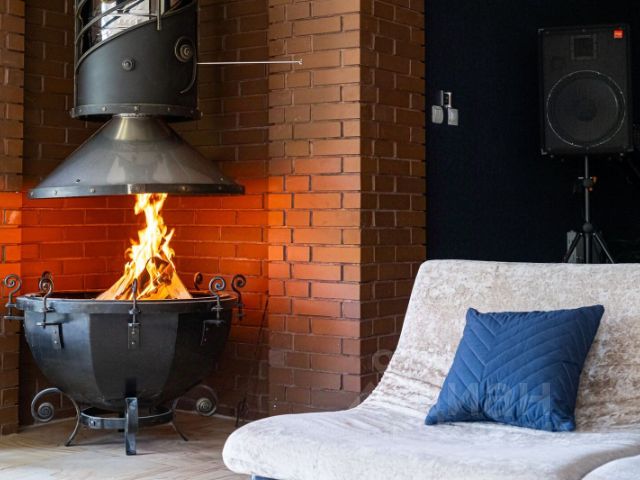 Чаша камина в виде литавра, а вытяжной купол украшен коваными нотами с подсветкой.