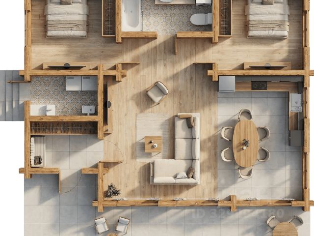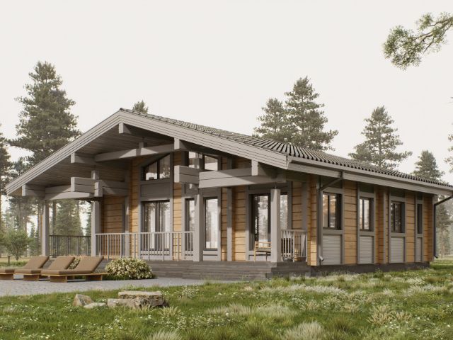 Номер объекта: 538239. Новый проработанный проект увеличенной площади, спроектированный под отдельные участки на берегу реки с видом из всех спален на журчащую реку и земли лесного фонда.