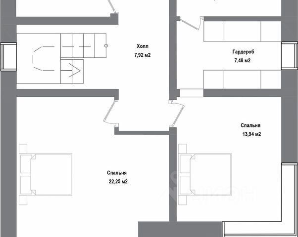 4 отдельные комнаты (спальни), 2 гардеробные, 2 ванные комнаты, постирочная, балкон.