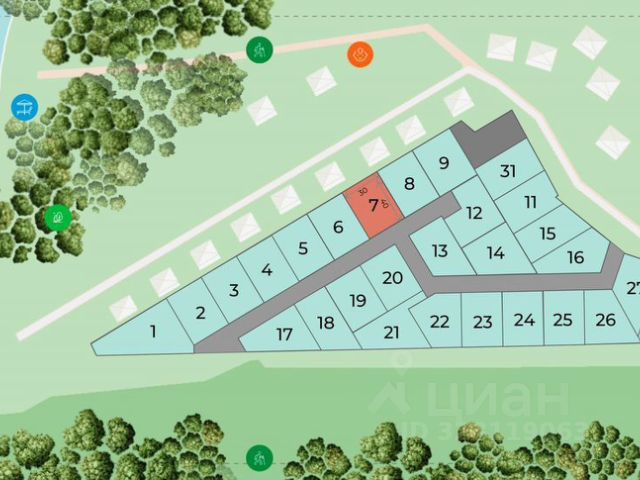 Участок ровный, сухой, огорожен забором с откатными воротами. Натуральный лесной массив — где растут грибы и ягоды. Высокий уровень безопасности — видеонаблюдение по периметру.