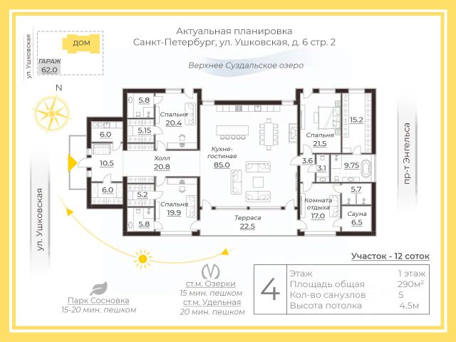 Двухэтажный дом в Павловске 182 м² Петрополь-2 находится в самом сердце города. Расположен на живописной Звериницкой улице на территории 14,19 соток. Входит в проект Павловск Градъ из 8-ми домовладений. У дома есть навес под авто 50 м², Терраса 16,6 м², крыльцо 13 м² Этот район Санкт-Петербурга располагает благоприятными условиями для спокойной семейной жизни и отдыха на природе. Идет окончание строительных работ, финишная стадия благоустройства территории 14 соток Г. Санкт-Петербург, Пушкинский район, г. Павловск, ул. Звериницкая Дом из высококачественного газобетона основателен и надежен, как это свойственно каменным зданиям, хорошо сохраняет тепло и, следовательно, экономичен. Выполнен в стиле Райт. На первом этаже гостиная и кухня, которые при желании можно разделить или объединить. Есть выход на террасу, а также проход на крытую стоянку для двух машин. Дом сдается с отделкой white box, все грязные работы выполнены, полностью готов к финишному ремонту! Во всех домах в проекте Павловск градъ качественны инженерные коммуникации, в том числе установлена современная система вентиляции — рекуперация воздуха Газ заведен в дом. Центральное водоснабжение + индивидуальная скважина Архитектурное решение и цветовая гамма дома продуманы таким образом, чтобы подчеркнуть гармоничную связь с природой. Используемые материалы, лаконичность линий и цветовые решения фасадов органично вписываются в живописную красоту Павловска и подчеркивают гармоничную связь с природой. Домовладения возводятся на уникальных перспективных участках, поэтому могут быть интересны как для инвестиций, так и для постоянного проживания. На территории предусмотрено видеонаблюдение, ландшафтный дизайн с привлекательным газоном, освещением, дорожками, парковочными местами и функциональными откатными воротами. Окружение: Павловский Парк, Екатерининский дворцово-паковый ансамбль и Александровский дворец и парк Инфраструктура: доступна вся городская инфраструктура, школы, детские сады, поликлиника, спортивные сооружения Отличная транспортная доступность, несколько транспортных магистралей к центру Санкт Петербурга и аэропорту Пулково. В пределах 20-40 минут — Стрельна, Петергоф, Ломоносов, Гатчина, Петергоф , горнолыжный курорт Туутари Парк. Записывайтесь на показ, задавайте вопросы про дом 182 м² Петрополь-2 на Звериницкой улице в Павловске На этапе завершения строительства цена ниже! Данный дом прекрасно подойдет, если вы - в поисках дома из газобетона на лучших участках Санкт-Петербурга - если ищите загородный дом для семьи, родителей в Павловске -если рассматриваете покупку как инвест-проект -идеальный дом для жизни и дачи в черте города рядом с Павловским парком В проекте "Невский градъ" предусмотрено 2 зеркальных дома Петрополь на разных участках