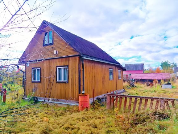 Продается ДОМ с участком 6-соток, в садоводстве "Южное" Гатчинского района. На участке летний щитовой, два этажа, фундамент-ленточный. Дом отапливается печкой. В доме две комнаты, кухня и веранда. На участке хозяйственный блок, и баня. Участок разработан, есть заезд, колодец с питьевой водой. На участке теплица, кусты и плодовые деревья. До станции 15 минут идти, есть водоем для купания, рядом смешенный лес.