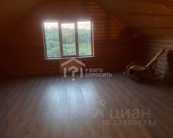 Стены изнутри отделаны имитацией бруса, окрашены. Напольное покрытие ламинат, подоконники деревянные, лестница на 2й этаж сделана по индивидуальному проекту из массива сосны.