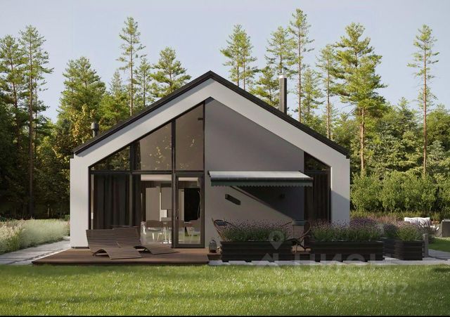 • Продуманное расположение дома, где основная свободная часть участка расположена перед панорамными окнами и террасой, с видом на лес. Представьте: чистый воздух, пение птиц, потрясающие закаты и рассветы, которыми можно любоваться сидя на террасе или находясь в доме, сквозь панорамные окна
