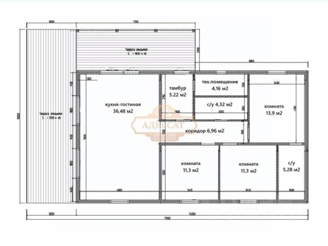 id:9467. Ленинградская область, Гатчинский муниципальный округ, городской посёлок Тайцы, коттеджный посёлок Демидовская усадьба Подходит под льготные ипотеки: IT-ипотека, семейная ипотека. Продажа от юридического лица. Качественный одноэтажный каркасный дом площадью 98,9 м + открытая терраса 49,5 м2 на участке 8 соток. Продуманная и удобная планировка: просторная кухня-гостиная 36,48 м2, 3 отдельные комнаты (11,3/11,3/13,9 м2), 2 санузла, котельная, прихожая. Дом подходит для постоянного круглогодичного проживания. Возможна постоянная регистрация. Фундамент - ленточный, каркас дома - сухая строганная доска камерной сушки. Утепление: стены, пол, кровля - 200 мм. Кровля - металлочерепица со снегозадержателями и водосточной системой. Наружная отделка: имитация бруса заводской покраски. Электричество -15 кВт, канализация - локальная станция очистки на 5-6 человек, скважина. Газ по границе участка. Водяной тёплый пол по всему дому. Установлен электрический и газовый котел. Потолок натяжной со встроенными светильниками. Межкомнатные двери. В санузлах установлена сантехника и мебель, стены и пол отделаны кафелем. На полу в кухне-гостиной и с\у керамогранит, в комнатах - ламинат. Полная внутренняя отделка дома под ключ, Вам остается только расставить мебель по своему вкусу. Участок 8 соток, ИЖС. Участок угловой, соседи с 2х сторон (уже живут), ровный, правильной формы. Залита площадка для авто. Дорога практически до самого участка - асфальт. Чистый воздух круглый год. Соседи приличные и дружелюбные. Дороги чистят. В пешей доступности прекрасный парк Демидовская усадьба - отличное место для пеших и вело прогулок. Также недалеко находится горнолыжный курорт Туутари парк, Безымянные озера. Вся необходимая инфраструктура в гп Тайцы - школа, детский сад, учреждения дополнительного образования и досуга (кружки и занятия для взрослых и детей), музыкальная школа, магазины, почта, салоны красоты, пункты выдачи интернет-заказов, частная клиника, государственная амбулатория и т.д. Заканчивается стройка спорткомплекса с бассейном в 5 км. Есть всё необходимое для комфортной жизни. До остановки общественного транспорта от дома 15-20 минут пешком. Ходит прямая маршрутка до м. пр. Ветеранов/ Гатчина. В 2,5 км - ЖД станция Тайцы, откуда 40 минут до Балтийского вокзала СПб без пробок. Дорога на автомобиле до КАД 15-20 минут. Полное юридическое сопровождение сделки. Оказываем помощь в одобрении ипотеки при необходимости. Возможны разные варианты оплаты. Звоните, проведем показ в удобное время по предварительной договоренности.