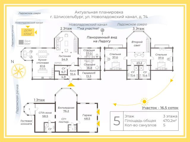 Арт. 107244858 В продаже просторный дом из клееного бруса с панорамным видом на Ладогу. Уникальной особенностью дома является собственный индивидуальный выход на воду прямо с участка. Мечта для любителей рыбалки: с собственного участка вы сможете отправиться за стерлядью, осетром и прочими редкими породами рыб в Ладожское озеро. Дом находится в уютном Шлиссельбурге, всего 30 км или получасе езды от Санкт-Петербурга по отличной дороге. Шлиссельбург богат достопримечательностями: Крепость Орешек, Собор Благовещения Пресвятой Богородицы, памятник Петру I и другие культовые здания. Но главное - экологическая чистота локации: в округе много лесных массивов. Недалеко от дома находятся магазины, детские сады и школы - здесь удобно не только отдыхать, но и жить круглый год. Респектабельные и статусные соседи ценят уникальные хактеристики этих мест. По соседству расположен элитный КП Прохоровские дачи. Дом построен с вниманием к деталям и качеству. В нем будет комфотно разместиться большой семье и принимать гостей: просторная кухня-столовая с панорамным видом и вторым светом, 5 спален, 5 санузлов, спа-зона с сауной и хаммамом, бильярдная. Во всем доме техника Miele. Установлены кондиционеры, есть теплые полы. Также вас порадует дополнительное здание 100 кв м, где располагается настоящая русская парная, купель, магнальная зона и зона для отдыха с панорамными окнами. Загородная резиденция обладает полным благоустройством, при этом экономична в содержании: центральное водоснабжение, канализация, электричество, газ. Продается дом на улице Новоладожский канал в городе Шлиссельбург.