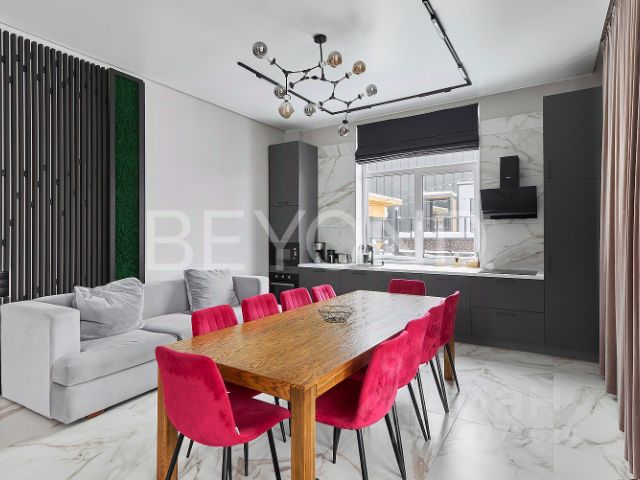 Основной дом каменный- 2 полноценных этажа, с высотой потолков более 3-х метров: на первом этаже- кухня, просторная гостиная с отдельной лаунж зоной и каминными креслами, кабинет с доп. Спальным местом, котельная с 2-мя газовыми котлами и резервным эл. Котлом, гостевой санузел, спа-зона с бассейном и противотоком, душевой, сауной и настоящим хамамом, плюс две летние террасы; на втором этаже- мастер-спальня с гардеробом и санузлом, гостевая спальня с гардеробом, детская комната, гостевая-игровая комната с бильярдным столом, сделанным на заказ, а также общий санузел!