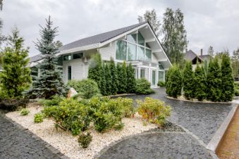 Дом построен на совесть: ленточный железобетонный монолитный фундамент, цокольный этаж монолитный на 2 метра в высоту, выше стены из газобетонных блоков плотностью D400 толщиной 400 мм, межэтажные перекрытия — железобетонные плиты.