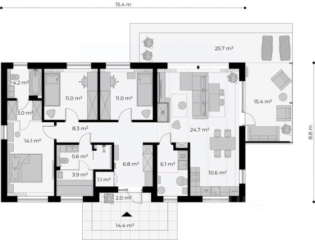 ЭКСКЛЮЗИВНОЕ ПРЕДЛОЖЕНИЕ! ДОМ С БАНЕЙ В 30 МИНУТАХ ОТ САНКТ-ПЕТЕРБУРГА! Вашему вниманию представляется уникальный комплекс: современный дом бизнес-класса (178 кв.м) и гостевой дом-баня (70 кв.м)! Готовый к проживанию, с дизайнерским ремонтом и ландшафтным дизайном! О ДОМЕ (178 кв.м): ПРОСТОР И КОМФОРТ: Просторная кухня-гостиная (40 кв.м), 4 отдельные спальни (2 спальни + гардероб + кабинет - перепланировка возможна!), гараж с мастерской, 2 санузла. ЭНЕРГОЭФФЕКТИВНОСТЬ: Скандинавский каркас, утепление 250 мм минеральной ватой, фундамент - утепленная шведская плита, теплые полы (1-й этаж), радиаторное отопление (2-й этаж), умное управление температурой (GSM). ДИЗАЙНЕРСКИЙ РЕМОНТ: Современный дизайн, качественные материалы, дорогая техника (Bosch, Kuppersberg). ЭКСТЕРЬЕР: Красивый фасад из японских панелей Kmew (влаго- и теплостойкие). КОММУНИКАЦИИ: Своя скважина (35 м), бойлер (300 л), электрическое отопление (современный котел с Wi-Fi управлением), возможность подключения газа, септик. ТЕРРАСА: Просторная терраса с видом на яблоневый сад и зону барбекю. О БАНЕ (70 кв.м): АВТОНОМНАЯ И УЮТНАЯ: Спальня, просторная комната отдыха-кухня (с полной техникой), парная, помывочная, отдельный санузел. КАЧЕСТВЕННОЕ СТРОИТЕЛЬСТВО: Каркасная технология, утепление 150 мм, отделка имитацией бруса, свайный фундамент. ПРОДУМАННАЯ КОНСТРУКЦИЯ: Система вентиляции, оптимальный микроклимат. УЧАСТОК (16 соток): ДВА СМЕЖНЫХ УЧАСТКА (по 8 соток), ОБЪЕДИНЕНИЕ ВОЗМОЖНО! ЛАНДШАФТНЫЙ ДИЗАЙН: Дренаж, водоотведение, освещение, мощение, забор с воротами. Детская площадка, зона патио (проект барбекю-дома есть!), яблонево-грушевый сад, ягодник, хвойные деревья. ГОСТЕВАЯ ПАРКОВКА (2 машиноместа). РАСПОЛОЖЕНИЕ: 30 МИНУТ ОТ ЦЕНТРА САНКТ-ПЕТЕРБУРГА! 7 МИНУТ ОТ ПЕТЕРГОФА: Развитая инфраструктура, магазины, рестораны, достопримечательности. СОСТОЯНИЕ: Идеальное! Без вложений! ПРИЧИНА ПРОДАЖИ: Переезд в город. ОДИН ВЗРОСЛЫЙ СОБСТВЕННИК. ЗВОНИТЕ! Код пользователя: 176809 Номер в базе: 7719120