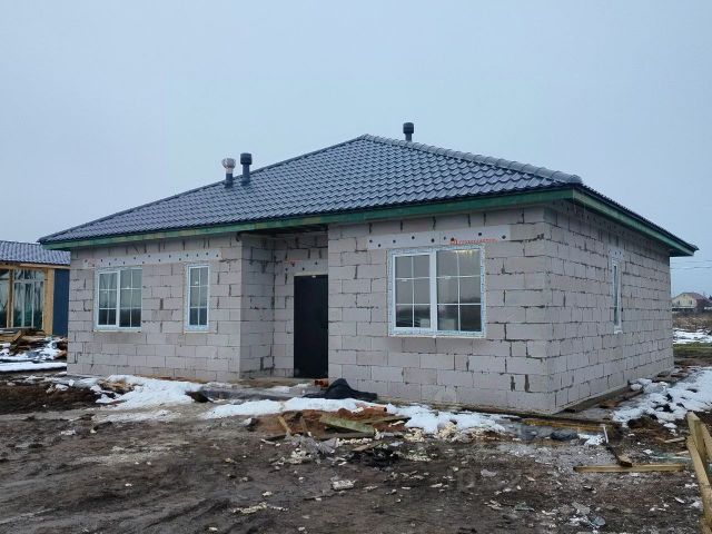 В продаже одноэтажный дом площадью 100 кв. м с террасой 15 кв. м в поселке Русско-Высоцкое, рядом с Красным селом. Характеристика дома: Объект построен из энерго-эффективного газобетона толщиной 300 мм на надежном ленточном фундаменте. Дом предлагается с предчистовой отделкой, что позволяет новому владельцу завершить ремонт в соответствии с личными предпочтениями и бюджетом. Дом будет покрыт штукатуркой. Вариант визуализации жилого пространства в карусели фотографий. Планировка функциональна и включает просторную кухню-гостиную, три изолированные спальни, два санузла, гардеробную, котельную и прихожую. Система отопления — водяные теплые полы от электрического котла с возможностью дистанционного управления, что обеспечивает равномерный прогрев и энерго-экономичность. Крытая терраса также оборудована теплым полом, позволяя использовать это пространство для отдыха в любое время года. Все инженерные системы — электрика, водоснабжение от скважины, канализация на базе септика — имеют гарантию 3 года. Участок площадью 6 соток ровный, сухой, с организованным местом для парковки. Есть возможность подключить газ. (на противоположной стороне улицы дома газифицированы) Инфраструктура: Поселок отличается удобной транспортной доступностью с быстрым выездом на КАД и ЗСД, при этом в шаговой близости расположены магазины, школа, детский сад, медицинские учреждения и остановки общественного транспорта. Дом находится в собственности и соответствует условиям семейной ипотеки, представляя собой готовое решение для комфортного круглогодичного проживания. Приглашаем на просмотр, звоните, записывайтесь! Дом ждет своего владельца! Код пользователя: 194487 Номер в базе: 10927036 Продается дом в селе Русско-Высоцкое Ломоносовского района.