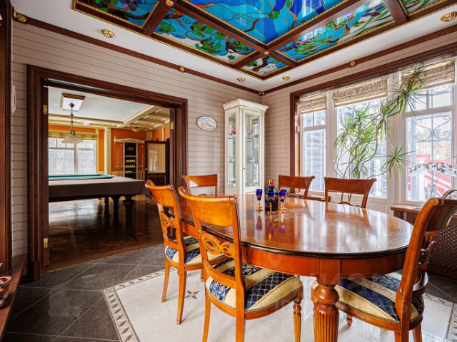 Загородная резиденция на берегу озера Суходольское — шедевр деревянной архитектуры и арт-стиля Италии и Португалии. Представляем вашему вниманию уникальную резиденцию, расположенную на первой линии (прямо на берегу) озера Суходольское. Резиденция состоит из комплекса домов: двухэтажный дом 259,1 кв.м., банный комплекс 57,2 кв.м., гараж, дом для охраны, здание котельной, дровяник. Резиденция разместилась на земельном участке площадью 57 соток. Дом выполнен с безупречным вкусом и наполнен теплом натурального дерева, яркими красками Италии и Португалии, превращая каждую минуту в живопись и музыку. Дом построен из бруса 150X150 мм на ленточном фундаменте, а фасад дома отделан финской вагонкой брашированной сосны. Комплекс полностью отапливается газом (газгольдер), электричество 30 кВт, скважина, территория оборудована видеонаблюдением с возможностью удаленного просмотра информации на телефоне и компьютере, а также пультовой системой охраны с тревожной кнопкой и выездом сотрудников охранной фирмы на место при срабатывании сигнализации. Потолки в доме из натурального дерева, выполнены на заказ, полы — наборный дубовый паркет во всех основных зонах, двери и наличники из бука, окна в доме — натуральное дерево с тройными стеклопакетами. Планировка дома: Первый этаж: правая часть — столовая зона в правой части первого этажа, с потрясающим витражным потолком и выходом на террасу из лиственницы — идеальное место для вечеров. Гостевая зона с камином Tulikivi крупного финского производителя и идеальна для отдыха и игры в бильярд на профессиональном итальянском бильярдном столе. Левая часть дома — кухня, мастер-спальня с санузлом и отдельная гостиная зона с двойным светом, камином от Tulikivi, домашним кинотеатром и лестницей на второй этаж из бука. Кухонный гарнитур изготовлен из вишни, а на стене выложено панно ручной работы Азулежу (Azulejo) португальского производителя; мастер-спальня с собственным санузлом — полностью оборудована сантехникой премиального уровня производства Италия "Migliore", окно украшено оригинальным витражом. Здесь все организовано с заботой и участием. Лестница на второй этаж изготовлена из бука, вдоль лестничного марша размещена картина с видами Итальянской Тосканы. Смелый дизайн сочетается с уютом, создавая атмосферу настоящего искусства. Второй этаж уникален комнатой-гостиной в древнеримском стиле, можно назвать музыкальной комнатой-гостиной, где установлен белый потрясающий рояль Yamaha с диск-клавиром и камином с порталом из натурального мрамора, привезенного непосредственно из Италии и французской каминной кассетой, просторной террасой и потрясающими видами на озеро Суходольское. Резиденция создана для тех, кто ценит эксклюзивность, тонкую архитектуру и гармонию природы с искусством. Если вы мечтаете о доме, который не просто жильё, а целое произведение, готовое принять вас и вашу семью в объятия света, тепла и вдохновения — этот дом на Суходольском озере ждет вас.