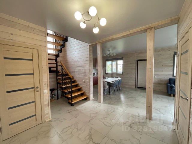 Кухня- гостиная с панорамными окнами Rehau оснащена гарнитуром со встроенной бытовой техникой и барной стойкой. Участок полностью отсыпан песком, вымощен брусчаткой, уложен плодородный грунт, засеян газон, высажены туи, цветы. Сделана ливневая система водоотведения.