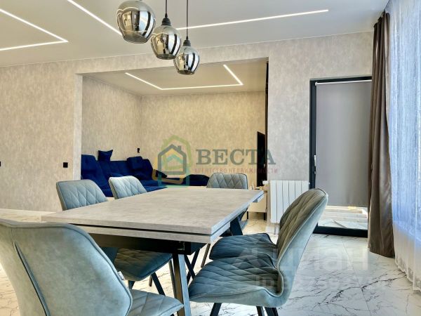 Дом отлично подойдёт для большой семьи или для тех, кто любит больше пространства, которого в этом доме предостаточно. Заходя в дом, сразу попадаешь в его сердце - огромную, но уютную гостиную 50 кв.м. полную света, с панорамными окнами в пол, с выходом на террасу 32 кв.м. Тут же рядом удобная и эргономичная кухня 12 кв.м. со всем необходимым: плита с духовкой, посудомоечная машина, холодильник. Также на первом этаже расположена уютная спальня 12.6 кв.м.