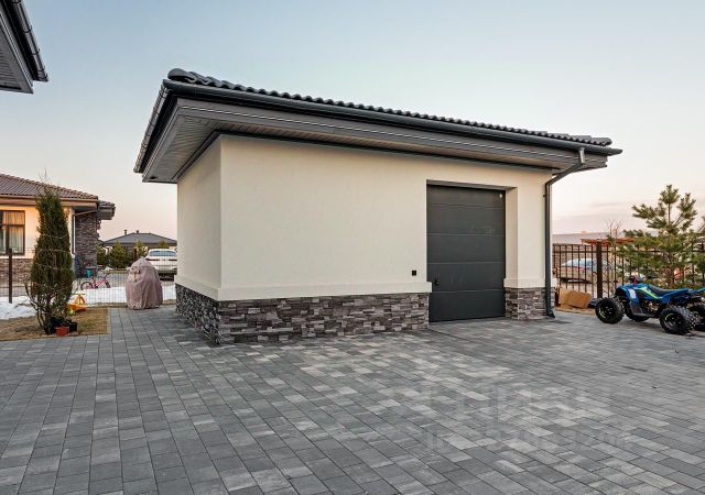 Площадь основного дома 210 м2 , к нему примыкает капитальное строение (бассейн, баня ) площадью 100 м2. Основной дом и здание бассейна соединяются галереей с зимним садом. Год постройки 2014 .