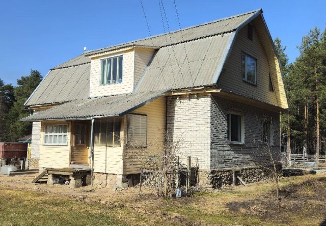 В доме 1й этаж: две комнаты, печка, заменена электропроводка, отдельно выведена на водонагреватель, на холодильник и пр. Есть водопровод из скважины, туалет с унитазом и обычной канализацией. На участке две поликарбонатных теплицы. Рядом богатые леса с грибами, ягодами. Есть газ.На втором этаже мансардная комната, обита вагонкой, пристройка - гараж, в гараже заготовлены дрова. В нем небольшая яма-холодильник. Сарай для хранения инструментов.