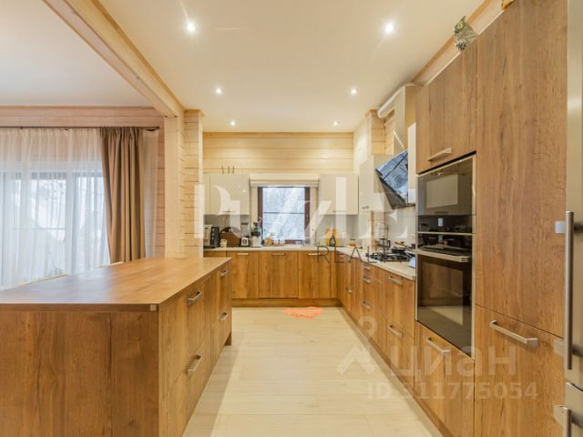 - Кухня с обеденной зоной, островом, газовой плитой, духовым шкафом и двухкамерным холодильником.