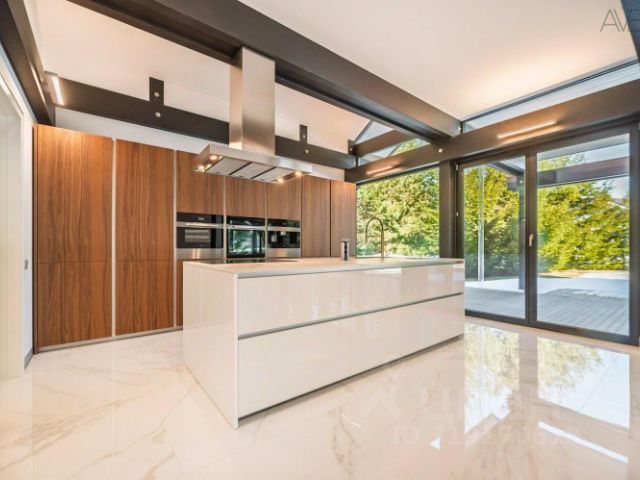 Всего в доме: большая кухня - гостиная, 2 спальни, 2 отдельные гардеробные, 4 санузла с душевой, две детские комнаты, кабинет.