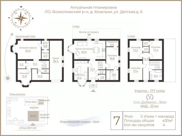 Эксклюзивное предложение: Двухэтажный коттедж 270 м² на участке 44 сотки с частным прудом и гостевой резиденцией 155 м² Представляем к продаже элитную недвижимость в престижном поселке Лукоморье. Просторный двухэтажный коттедж площадью 270 м² расположен на тщательно спланированном участке в 44 сотки, включающем собственный пруд и отдельный гостевой дом площадью 155 м². Оснащение и Отделка: Коттедж оснащен лучшим европейским инженерным оборудованием: система отопления Viessmann, система кондиционирования, встроенные пылесосы Electrolux. Для гарантированного водоснабжения помимо центрального подключения поселка предусмотрена частная скважина с комплексной системой водоочистки. Авторский дизайн интерьеров реализован с применением элитных европейских материалов, итальянской мебели, кухонной техники премиум-класса и сантехнического оборудования высочайшего качества. Планировка Основного Дома (270 м²): Первый этаж: Два крыльца, просторная прихожая. Кабинет (19 м²), гостевой санузел. Великолепная гостиная с камином (55 м²) органично перетекает в светлую кухню-столовую (22 м²). Просторный зимний сад (32 м²) и крытая веранда (49 м²) создают единение с природой. Второй этаж: Роскошная хозяйская спальня (38 м²), две комфортабельные спальни (по 21 м²), гардеробная зона и санузел. Гостевая Резиденция (155 м²): Первый этаж: Техническое помещение котельной, холл с гардеробной, санузел, функциональная кухня-столовая (24 м²), спальня (16.5 м²). Жемчужина дома просторная SPA-зона (53 м²), включающая финскую и турецкую парные, купель, бассейн и комнату отдыха. Крытая веранда (28 м²) примыкает к зоне релаксации. Второй этаж: Уютная гостиная (31 м²). Цокольный этаж (65 м²): Практичные помещения: водомерный узел, прачечная, две кладовые. Данный объект представляет собой редкое сочетание безупречного европейского качества, продуманной инфраструктуры премиум-поселка и уникальных природных преимуществ участка. Описание участка, 0,44 Га: На территории участка, благоустроенной по эксклюзивному авторскому проекту владельца, создан уникальный ландшафтный ансамбль. Величественные сосны, голубые ели, туи, кедры и разнообразные кустарники обрамляют продуманную сеть аллей, идеальную для неспешных прогулок среди зелени. Плодовый сад с яблонями, вишневыми деревьями, черешней и тутовником дополняется обширным виноградником, открывающим возможность производства собственного вина. Эстетику и функциональность подчеркивают элегантная английская теплица, декоративный французский огород, а также плантации ягодных культур, включая жимолость, смородину и крыжовник. Центром притяжения служит бережно сохраненный и облагороженный природный водоем, питаемый ключами, богатый рыбой и украшенный коллекцией лилий, где обитает утиное семейство; в тени деревьев расположен изящный пруд с парой редких черных лебедей. Уединенные беседки, размещенные в саду и на берегу, создают комфортные условия для отдыха и наслаждения природой в любую погоду.