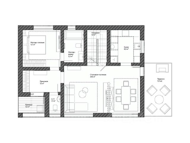 Дом в стиле Modern Barn House на участке с коммуникациями. Предложение действительно для строящегося дома. Срок строительства 5 месяцев. На фото представлен дом уже построенный для нашего клиента. Дом расположен в коттеджном поселке "Лес и Пляж". Поселок является закрытой территорией с собственной службой охраны и видео-наблюдением, кроме того всегда доступны услуги консьерж-сервиса. Выдержан единый архитектурный стиль Modern Barn House, асфальтированные дороги, собственный парк на территории. В доме есть все городские коммуникации: электроэнергия, городской водопровод, канализация, газ (по границе участка), а также высокоскоростной интернет. Дом сдается в комплектации "Теплый контур". Характеристики: • Площадь участка: 5,9 сот. • Общая площадь дома: 129.6 м² • Общая площадь дома с террасой: 140,7 м² • Количество этажей: 2 • Количество Спален: 2 • Количество санузлов: 2 • Потолок в гостиной: 6.5 м • Площадь первого этажа: 95.47 м² • Площадь второго этажа: 45.3 м² Коммуникации: • Электричество: 15 кВт • Магистральный газ по границе участка • Центральное водоснабжение • Городская канализация • Интернет (оплачивается дополнительно) В пешей доступности от "Лес и Пляж": яхт-клуб, песчаный пляж, конный клуб, места для рыбной ловли, ресторан на воде и многое другое. Cобственная дорога до Ладожского озера.) Дом прекрасно подойдет как для собственного круглогодичного проживания, так и для сдачи в аренду.