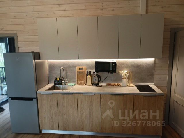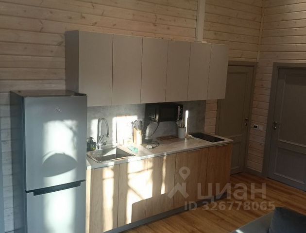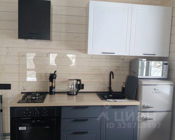 Наружная отделка - вертикальный современный сайдинг, внутри стены обшиты имитацией бруса `карельский профиль` с увеличенным шипом, окрашена до и после монтажа. На полу кварц-винил, уложенный елочкой. В санузле на полу плитка - теплый пол.Отделка сауны - липа, полки - осина. Дом частично меблирован - кухня укомплектована необходимой бытовой техникой, в гостиной - диван, в СУ - стиральная машина.