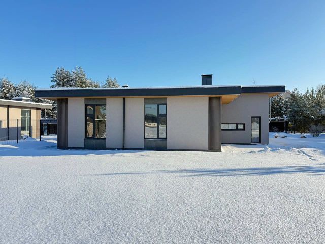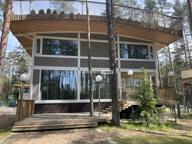 Дом расположен на возвышенности в окружении сосен, с крыши дома открывается прекрасный вид на кроны окружающих его деревьев.Участок примыкает к закрытому лесному массиву, что в некотором смысле расширяет его полезную площадь и гарантирует отсутствие близкого соседства.Проект имеет площадь внутренних отапливаемых помещений 281 м2, а вместе с большой открытой террасой и эксплуатируемой кровлей составляет 516 м2. Большую часть 1 этажа занимает кухня-гостиная с панорамными окнами на три стороны света, с выходом на крытый балкон и открытую террасу. Здесь также находятся кабинет, гостевой санузел и хозяйственная кладовая/прачечная с входом прямо из кухни.На 2 этаже расположена большая мастер-спальня с видом на две стороны света с вместительной гардеробной и своей ванной комнатой, а также три детские спальни, каждая со своим личным гардеробом. Для этих спален предусмотрены общая ванная комната и дополнительный санузел, а в холле поместилась ещё небольшая хозкладовая.Прямо из холла второго этажа можно подняться по лестнице на эксплуатируемую кровлю. Здесь в окружении плодовых и декоративных растений на просторной открытой террасе могут располагаться кресла и шезлонги, детский бассейн, а под закрытым от дождя и ветра навесом летняя кухня с обеденным столом и местом для приготовления еды.Дом построен по технологии фахверк из клееного бруса. Для утепления используется теплоизоляционный материал PIR огнестойкий материал, обладающий самой низкой теплопроводностью среди всех известных теплоизоляционных материалов. Панорамное остекление выполнено двухкамерными стеклопакетами толщиной 46 мм с теплоудерживающим покрытием.В доме выполнена чистовая отделка. Проложены все инженерные сети, вентиляция, отопление, канализация; в комнатах оборудованы тёплые водяные полы с раздельной автоматической регулировкой температуры, дистанционным контролем и управлением (система "умный дом").Газовое отопление. На участке установлен индивидуальный газгольдер емкостью 7400 литров сжиженного газа.Эксплуатируемая кровля полностью готова: сделан выход на неё прямо из дома, прозрачный навес, встроенная мебель, посажены все растения, установлена система автополива. На территории поселка предусмотрена вся необходимая инфраструктура для комфортного круглогодичного проживания, включая асфальтовые автомобильные дороги, тротуары, центральный парк, пруды с проточной водой, каскад водопадов, площадку для ловли рыбы, родник с ключевой водой, а также лесные дорожки, беседки, детские и спортивные площадки и просто множество живописных и уютных уголков. Предусматривается круглосуточная охрана посёлка с видеонаблюдением и патрулированием, система контроля доступа машин, сервис по обслуживанию домов и центрального парка, уборке территории. Дом подходит под семейную ипотеку, а так же можно построить дом под заказ в этом коттеджном поселке , есть разные проекты от 180-700 кв.м.