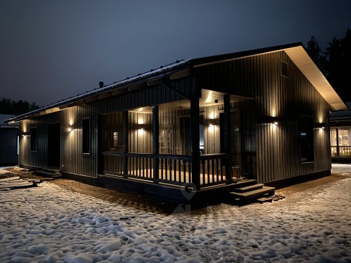 Жилой дом: Одноэтажный, 128,2 Кв метров, В доме 2-е спальни: 16,5 кв. м и 16,5 кв. м. + личный санузел (Мастре-спальня), большая кухня-столовая-42,3 кв.м.+ кухня 11,9 кв.м. с высокими разноуровневыми потолками и панорамным остеклением. Есть помещение в котором изначально задумана сауна, Отдельно котельня, ванная. Строился по каркасной технологии, утеплен, фасадная отделка из натурального дерева, кровля-железная черепица, фундамент-плита, отопление дома обустроено и под газ и под электричество. Сейчас пока к нашему дому идет согласование по газу, отапливаются электричеством, но под газ все оборудование уже тоже готово. У соседей газ подключен. На фото газ в 10 метрах от дома. Установлено в котельне: Бойлер для нагрева и накопления воды, Газовый котел, электрокотел, насосы, в общем все для функционирования уже установлено.
