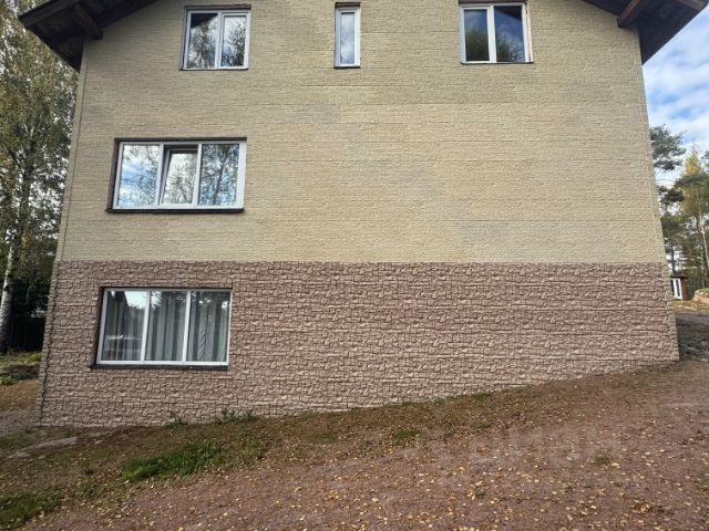Фасад: имитация бруса (окрашенная, 2 слоя Tikkurila), свесы и карнизы, защита от мышей, от ОС, водосточные фартуки для окон.