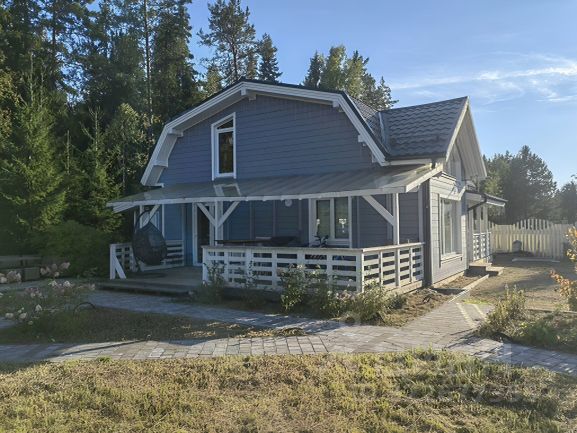 Современный коттедж в респектабельном поселке НА БЕРГУ РЕКИ. - ДОМ по каркасной технологии ЛСТК (лёгкие стальные тонкостенные конструкции), утеплитель мин-вата Роквул. Площадь 190 м2, терраса, 2 балкона. Панорамное остекление в 4 помещениях. - Современная планировка. Кухня-гостинная 41 м2 с панорамными окнами на лес и выходом на террасу. Второй свет. Жилая комната на 1 этаже 27 м2 с входом на террасу. На 2 этаже спальня 11,5 м2 и мастер-спальня 11,5 с видом на лес и выходом на балкон. Санузел на 1 этаже и помещение по санузел/сауну на 2 этаже. Кладовая. Балкон 29 м2. - РЕМОНТ. Предчистовая отделка. Требуется завершить косметику в большей части помещений, частично напольное покрытие, установить лестницу и ограждение на 2 этаж. Другие работы. - ФУНДАМЕНТ монолитная плита - ЭЛЕКТРИЧЕСТВО 15 кВт - ОТОПЛЕНИЕ - телпые водяные полы + печь камин - КАНАЛИЗАЦИЯ - локальный септик. - УЧАСТОК сухой, ровный. Великолепный вид на лес. 1-я береговая линия. РЕКА Перовка протекает в 15 метрах от участка, свой выход к воде. Можно построить мостки или купальню. Из дома слышен шум воды на перекатах. - Массив ВЕРХОВСКИЙ - современный респектабельный поселок в 15 минутах на машине от Выборга. Ухоженная территория, хорошие дороги, уличное освещение, центральный водопровод, охрана, детские площадки, пляж,зоны отдыха. Рядом с домом - прекрасный лес, гибы, ягоды, рыбалка. - СОБСТВЕННОСТЬ. Документы полностью готовы к сделке. Дом и участок в собственности, стоят на кадастре, межевание есть. Дом по документам ЖИЛОЙ. Прописка. Присвоен адрес. Можно покупать под ипотеку или Матал, субсидии, жилищные и земельные сертификаты. 1 совершеннолетний собственник. - ПОКАЗЫ в любой день недели, но только по предварительному согласованию Купить дом в ДНП Верховский в сельском поселении Гончаровское.