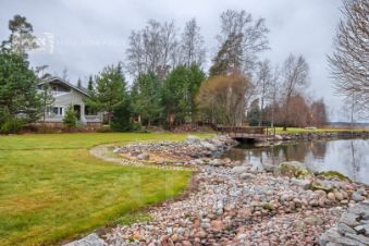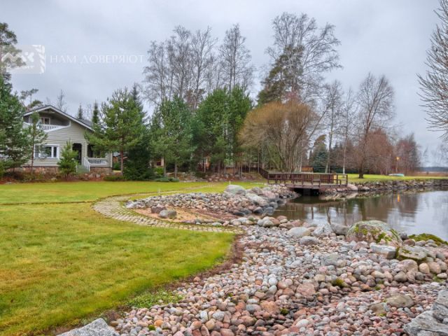 Обустроенная УСАДЬБА на 48.83 сотках видового участка с ЖИЛЫМ ДОМОМ (с полной отделкой и встроенной мебелью), а также с другими усадебными постройками в элитном коттеджном поселке "Ладога" - У ЛАДОЖСКОГО ОЗЕРА, на берегу реки Бурная, с ПРИЧАЛОМ ДЛЯ КАТЕРОВ.