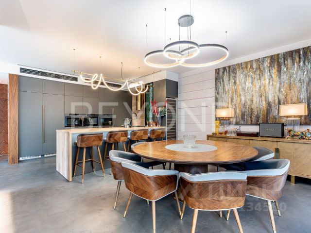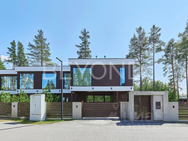 Предлагается совершенно новый дом в поселке премиум-класса, удостоенном премии конкурса "Доверие потребителя" как лучший реализованный загородный проект. Дом площадью 622 кв. м расположен на участке 21 сотка в окружении соснового леса. Двухэтажное здание выполнено из высококачественных материалов. Почти из каждой комнаты предусмотрен выход на просторную светлую террасу — их общая площадь составляет около 200 кв. м. Войти в дом можно как через главный вход, так и из теплого гаража на два машиноместа. Дополнительно автомобили можно разместить под навесом площадью 50 кв. м. На первом этаже расположены: кухня, полностью оборудованная техникой NEFF, с удобной кладовой для хранения продовольственных запасов; просторная гостиная со вторым светом и камином; домашний кинотеатр, оснащённый акустикой KEF; гостевая комната со своей ванной и гардеробом; комната отдыха, гардеробная для верхней одежды, гостевой санузел и котельная. Из гостиной предусмотрен выход на террасу, где размещена гриль-зона с оборудованием Napoleon. Второй этаж представляет собой приватное пространство: две мастер-спальни, кабинет с выходом на террасу и две детские комнаты. Весь дом оснащён системой "умный дом" фирмы AQARA с интеграцией голосовых ассистентов "Алиса", а также системой вентиляции и кондиционирования во всех помещениях. Коттеджный поселок "Репинские усадьбы" расположен в одном из самых удобных и престижных районов пригорода Санкт-Петербурга. В поселке выдержан единый архитектурный стиль. Территория огорожена, въезд осуществляется через пост охраны. На территории оборудованы детская площадка, пешеходный бульвар и променад вдоль пруда. Поселок подключён к центральным коммуникациям. В пяти километрах расположен Финский залив, а в шести — озеро Щучье. До универсама "Репинский 24" и ресторана "Шаляпин" — около десяти минут на автомобиле. Неподалёку находится загородный клуб "Ленинское", где доступны каток, тренажёрный зал, сквош, кинотеатр и рестораны. Расстояние до центра Санкт-Петербурга составляет 50 км, до ЗСД — 5 км, до трассы "Скандинавия" — 2 км.