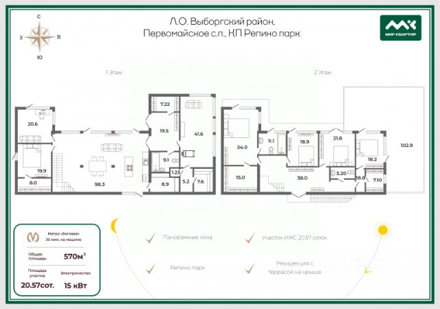 Арт. 133815204 Код объекта: 1856392. Продается дом площадью 147,4 м2 в коттеджном посёлке комфорт-класса "Ленинская Слобода ", расположенный в Выборгском районе Ленинградской области, на территории Карельского перешейка. Расстояние до КАД составляет 27 км по Выборгскому шоссе.( можно доехать как по Выборгскому шоссе, так и по Скандинавии). Koттeджный пoceлок pаспoложeн в "золотом треугольники", недалеко от нaсeлeнных пунктов Репино, Комарово, Ленинское и в 6 км oт побережья Финского залива. Поселок предназначен как для сезонного отдыха, так и для постоянного проживания.Сам Дачный поселок находится не доезжая 3 км. от пос. Симагино. в Симагино есть новый парк аттракционов "Озорные белки" (в 4 км от участка) - отличный отдых для детей и всей семьи - веревочный городок, горки, подземные лабиринты, батуты, качели, футбольное поле, полоса препятствий, теннисные корты, звериная ферма. Участки сухие, ровные. В поселке Симагино развитая инфраструктура. Недалеко находятся озера Симагинское, Б. Симагинское( Красавица), Длинное. В Дачном поселке создана Управляющая компания ( УК "Город рядом"). Сделаны временные дороги. Есть электричество. В дальнейшем возможна газификация. О доме: Дом 147,4 м2, теплый контур , обшит - имитация бруса , внутренняя отделка не выполнена. Кровля металлочерепица. Свайный фундамент, железобетонные забивные сваи. Гостиная: площадь 40,13 м2 , высота потолков по нижней точке 4,5 м , уложен черновой пол ЦСП плита , панорамные окна. Три спальни 20,06 м2 , 19,03 м2 ,16,88 м2 , одна из них мастер спальня, со своей гардеробной и санузлом , вторая спальня с гардеробной. В доме два санузла. Есть закупленный материал для внутренней отделки дома , который остается будущему владельцу, а также материал для окончания работ по установке забора. Инфраструктура и коммуникации Электричество 15 КВТ Охраняемая территория с КПП и системой пропусков Собственный пруд на территории Развлечения и досуг Посёлок окружён природными объектами: Лесные массивы Озера с чистой водой Река Сестра Возможность заниматься: Рыбалкой Верховой ездой Гольфом Спортивные и детские площадки На территории посёлка предусмотрены: Детская площадка Спортивная площадка Теннисный корт Волейбольная площадка Футбольное поле Дополнительные преимущества Близость к городу: 40 минут до центра Санкт-Петербурга на автомобиле Развитая инфраструктура в ближайших населенных пунктах (Ленинское, Симагино): Магазины Школы Детские сады Поликлиники Банк Почтовое отделение