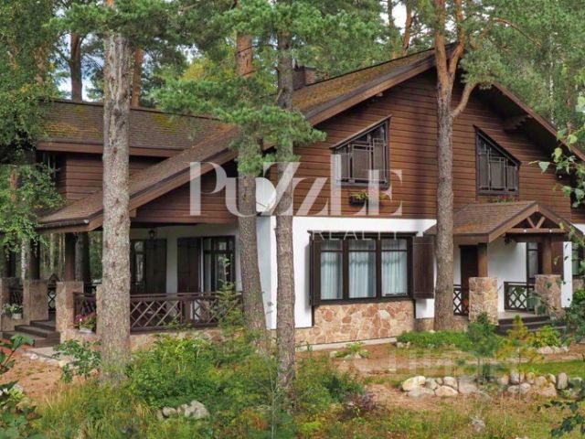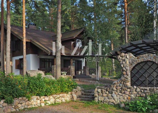 Лот Z848 Альпийское шале недалеко от Петербурга. Рядом с Красногвардейским озером в окружении прекрасного соснового бора вас встречает дом в стиле альпийского шале. Полностью облагороженный участок в 15 соток приглашает вас на отдых среди вековых сосен и пушистых елей. Черника, грибы, мох соседствуют с небольшими ландшафтными композициями и цветниками. Ароматы вкусных блюд, приготовленных в собственном летнем патио на участке, дополняют идиллическую картину в компании близких и друзей, а удобная и функциональная планировка дома на площади 266 м2 позволяет разместить всех с комфортом. На первом этаже в сердце дома - просторной гостиной (32 м2) с камином вы сможете продолжить обсуждение семейных новостей и успехов. Ведь все пространство первого этажа, как и дома в целом, продуманное и функциональное. Гостиная соединена с кухней (особой гордостью которой является кладовая - 18,7+8,7 м2) и террасой с качелями, на которых летними вечерами так прекрасно любоваться закатом, укрывшись теплым пледом и провожая насыщенный день! На первом этаже также расположены гостевая спальная комната (11 м2), два санузла с душевыми (по 5 м2), котельная (7 м2) с отдельным выходом на улицу. Дом построен и отделан с использованием только натуральных материалов. Деревянная мебель и элементы подчеркивают атмосферу тепла гармонии. Столы и стулья, кровати и шкафы результат мастерски выполненной ручной работы! Так на второй этаж ведет лестница, выполненная из массива. Как легко подниматься по этим широким ступеням! Наверху расположено целых пять спальных комнат! Мастер-зона (34 м2) хозяев дома оборудована небольшим кабинетом и собственным санузлом. За другой дверью нас встречает светлое пространство детской комнаты (24 м2), которое ждет своего нового маленького хозяина. Из окон каждой комнаты открывается великолепный вид на окружающий лес, сосны и линию горизонта! Несмотря на аутентичность, дом полностью оснащен современными инженерными системами: отопление устроено с использованием водяных тёплых полов и радиаторов; для целей энергоэффективности дополнительно предусмотрена безопасная система вентканалов для передачи тепла от керамического дымохода; система видеонаблюдения по периметру дома, охранная сигнализация (мобильная группа в 7 минутах от дома). Выделенная мощность энергоснабжения 30 кВт. Чистая питьевая вода поступает в дом по зимнему водопроводу из собственного колодца (10 колец, хороший дебет, в жаркую погоду всегда есть 5 колец воды). В стороне установлены локальные очистные сооружения. Качественное инженерное оснащение позволит вам поддерживать внутри дома благоприятный микроклимат в любое время года. Конструктив дома опирается на монолитную ж/б плиту с обратным ростверком. Первый этаж возведен из поризованного керамического кирпича (стена 400 мм). Второй этаж представляет собой деревянный каркас (утепление 200 мм, пирог стены 400 мм), отделанный имитацией лафета из лиственницы. Утепление кровли сделано по перекрытию второго этажа (холодное под кровельное пространство). Фасад первого этажа оштукатурен и отделан камнем. Участок дома по периметру огорожен, в вашем распоряжении парковочная зона на 3 автомобиля. Дом расположен рядом с Красногвардейским озером (10 минут прогулочным шагом) в окружении прекрасного соснового бора, где помимо прогулок можно зан