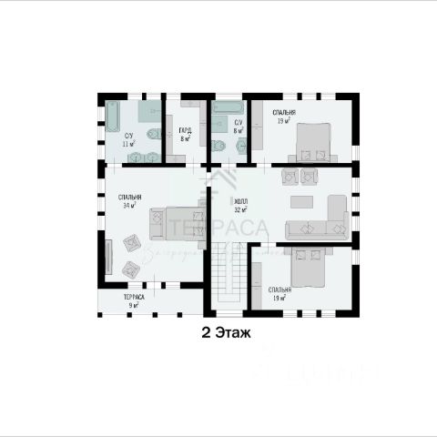 -В коттедже 3 гостевых спальни, гостиный зал с потолками 7.5 метров, кухня-гостиная, крытая и открытая террасы