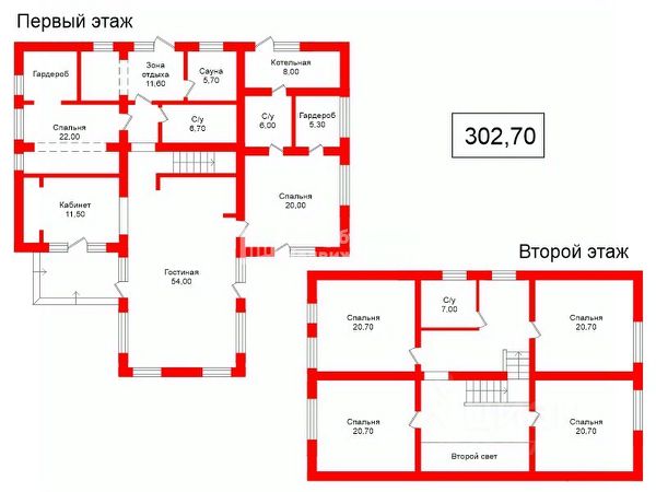 3-ий этаж: -2 спальни