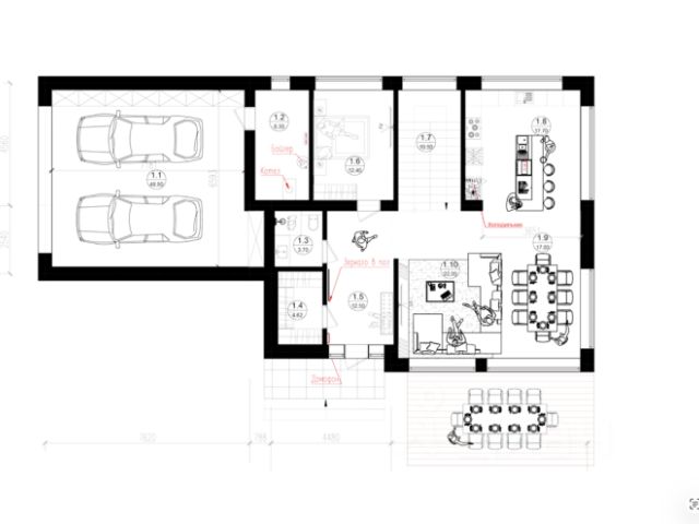 Кухня-столовая- гостиная - 42,56 м²;Терраса - 24,17 м²;Терраса - 22,03 м²;Холл - 17,89 м²;