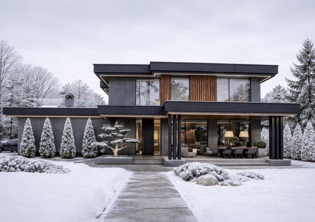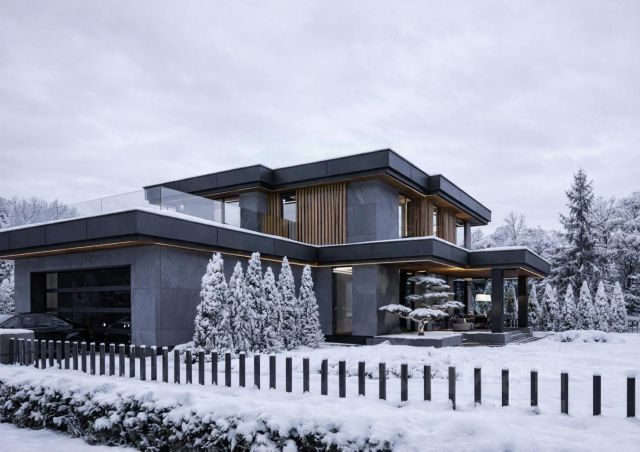 Общая площадь: 274,76 м², Полезная площадь: 201,85 м², Площадь первого этажа: 105,99 м², Площадь второго этажа: 95,86 м², Площадь террас и балконов: 72,91 м²; Фундамент - ленточный; Стены - фахверк; Фасады- фиброцементные панели; Кровля - скатная фальцевая кровля; Окна и двери - деревянные; Высота потолков: 1 этаж - 3 метра, 2 этаж - 2,8 метра.