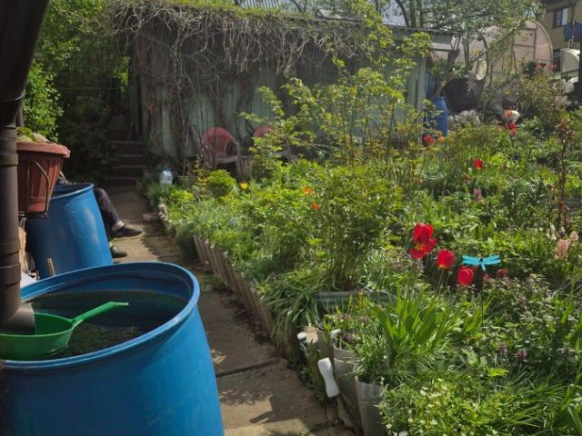 На участке посажены плодовые деревья (яблоня, груша, алыча, вишня, черешня), кустарники (смородина, крыжовник, голубика, ежевика, жимолость), клубника. На участке растут сосны и орешники, декоративные деревья, хвойники, многолетние цветы.