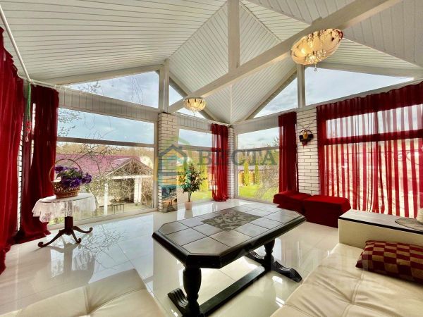 Центральная часть дома, площадью 193 квм. включает в себя отдельную просторную кухню 17 квм, просторную гостиную 26 квм с камином и очень уютную остеклённую террасу 20 квм, с красивым видом на ухоженный участок, где вы можете как предаваться уединению, так и устраивать дружеские вечера - места всем хватит.