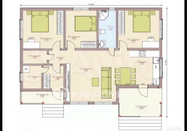 Кухня-гостиная 26 м² (потолок 4,2 м.), мастер-спальня 15 м², со своей гардеробной 3,2 м² и санузлом 4,3 м², две спальни по 11 м², кабинет 6,7 м², общий санузел 4,6 м², просторный холл 6,8 м², широкий коридор 8,1 м², котельная 4,9 м².