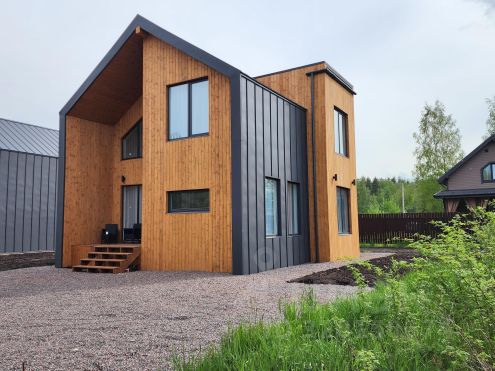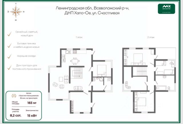 СПб 10км, дом 155,60 кв.м + гостевой дом 88 кв. м со встроенным гаражом в обжитом элитном коттеджном поселке Изумrood (Изумруд) на уч. 9,69 соток ИЖС (ландшафтный дизайн), все коммуникации (центральные: водоснабжение, газ и электроснабжение 15 кВт; канализация - ЛОС).