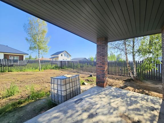 На участке тротуарная плитка, туи, декоративные хвойные растения, сад (черешни, вишня, яблоня, смородина, крыжовник), розы. Выполнен ландшафтный дизайн.