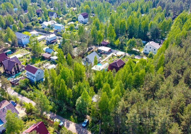 Все соседние дома построены. Однородное окружение, тишина и приватность. Въезд на территорию через откатной шлагбаум.