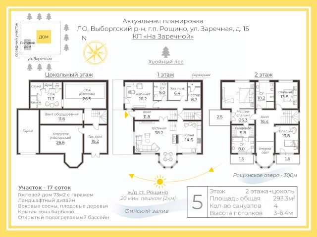 УНИКАЛЬНЫЙ КЛУБНЫЙ ПОСЕЛОК НА 18 УЧАСТКОВ НА БЕРЕГУ ОЗЕРА ОБЪЕКТ РЕАЛЬНЫЙ, ГОТОВ К ПОКАЗУ! ОБ ОБЪЕКТЕ: - Земельный участок 13,82 соток - Дом 274.76 м² - Навес на 2 автомобиля площадью 55,95 м² - Баня/ Летняя кухня из газобетона площадью 50,2 м² ОБ УЧАСТКЕ: РОВНЫЙ СУХОЙ УЧАСТОК, кадастровый номер 47:01:1536001:5895, сохранены хвойные деревья. Произведены все земельные работы: дренаж участка, дренаж фундамента, проложены все основные коммуникации водоснабжения и водоотведения, Септик установлен, электрические коммуникации, кабеля. Выровнен ландшафт, в настоящий момент ведутся работы по мощению въезда и тропинок тротуарной плиткой( срок выполнения работ 1 июня). О ДОМЕ: ФАХВЕРК во сей красе и высококлассном исполнении! Общая площадь: 274,76 м², Полезная площадь: 201,85 м², Площадь первого этажа: 105,99 м², Площадь второго этажа: 95,86 м², Площадь террас и балконов: 72,91 м²; Фундамент - ленточный; Стены - фахверк; Фасады- фиброцементные панели; Кровля - скатная фальцевая кровля; Окна и двери - деревянные; Высота потолков: 1 этаж - 3 метра, 2 этаж - 2,8 метра. Кабеля и трубы в доме разведены до момента финального монтажа, то есть нет лишних отверстий и дырок до окончательного проекта покупателя, что важно для дома такого типа. Окна -деревянные стеклопакеты с аллюминиевыми накладками с внешней стороны. Высокое качество материалов и строительства! На первом этаже расположены: Кухня-столовая- гостиная - 42,56 м²;Терраса - 24,17 м²;Терраса - 22,03 м²;Холл - 17,89 м²; Комната отдыха - 17,31 м²;Терраса - 9,43 м²;Постирочная - 6,64 м²;Тамбур - 6,06 м²; Бойлерная - 6,02 м²;Сауна - 4,28 м²;Санузел - 3,05 м²;Санузел - 2,18 м². На втором этаже расположены: Спальня - 18,55 м²; Спальня - 17,34 м²; Второй свет - 14, 79 м²; Спальня - 12,85 м²; Холл - 9,28 м²; Балкон - 8,86 м²; Балкон - 8,42 м²; Санузел - 6,47 м²; Санузел - 5,29 м²; Лестница - 5,16 м²; Гардероб - 3,92 м²; Гардероб - 2,21 м². Дом уже зимовал, никакой усадки. КОММУНИКАЦИИ: -Выделенная мощность электричества - 30 кВт; - Вода из артезианской скважины; - Дороги в поселке, а также подъездная дороги заасфальтированы; - Септик 800 литров; - Огорожен с фасадной части и части мест общего пользования, откатные ворота; - лестница на второй этаж смонтирована, дубовые ступени упакованы в доме; - электрический котел и бойлер в доме новые в упаковке; ПРЕИМУЩЕСТВА: Закрытый поселок на 18 участков, охрана круглосуточно, Вторая линия Озера, Вид на Нахимоское озеро из спален второго этажа, дом на участке расположен на стыке двух участков первой линии, то есть дома владельцев не закроют обзор озера, свой лес и выход к озеру, респектабельные соседи, статус, тишина и комфорт! РАСПОЛОЖЕНИЕ: расположен в 80 км от Санкт-Петербурга по выборгскому шоссе. Ленинградская область, Выборгский район, Рощинское городское поселение, поселок Пирс УСЛОВИЯ И ДОКУМЕНТЫ: ДОКУМЕНТЫ ГОТОВЫ К СДЕЛКЕ! Собственность! Подходит под ипотеку, возможно оформить рассрочку по индивидуальному согласованию. Купить коттедж рядом с озером в Выборгском районе Ленинградской области.