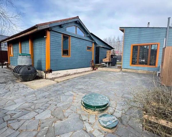 во дворе имеется обустроенный пластиковый септик с автоматическим удалением содержимого и перекачивания в сливную канаву.