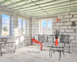 Второй 1-эт. дом, на участке 8,8 кв.м., площадью 36 кв.м. Каркасный, утепленный дом, обшит сайдингом, крыша ондулин, окна - ПВХ. Состоит из прихожей 6 кв.м. и большой комнаты 30 кв.м. с камином и кухонным уголком.