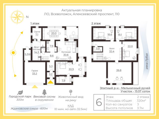 Уникальный Дом 390м2, с отделкой по дизайн-проекту, сауной, хамамом, бассейном с противотоком, бильярдом, мангальной, гостевым домиком-беседкой и необыкновенной красоты ландшафтным дизайном, в котором использованы более 1000 деревьев/растений, а так же фруктовым садом с яблонями, грушами, сливами, малиной, а центральным обьектом является пруд с карасями и каскадным водопадом и фонтаном!!! Основной дом каменный- 2 полноценных этажа, с высотой потолков более 3-х метров: на первом этаже- кухня, просторная гостиная с отдельной лаунж зоной и каминными креслами, кабинет с доп. Спальным местом, котельная с 2-мя газовыми котлами и резервным эл. Котлом, гостевой санузел, спа-зона с бассейном и противотоком, душевой, сауной и настоящим хамамом, плюс две летние террасы; на втором этаже- мастер-спальня с гардеробом и санузлом, гостевая спальня с гардеробом, детская комната, гостевая-игровая комната с бильярдным столом, сделанным на заказ, а также общий санузел! Гостевой дом-беседка: 70м2 теплый гостевой дом, 2 спальных места, кухня, тренажерный зал, огромная крытая терраса с барбекю и зоной для загара! Также в гостевом доме сделано хоз. Помещение+ помещение для оборудования водопада! Гараж на 2 авто+ 3 хоз. Помещения! Детская площадка+ прогулочные зоны+ летняя беседка+ садовая зона: парник, малина, фруктовый сад, лесная зона, газон с летним футбольным полем, баскетбольная площадка И так далее! Особую привлекательность представляет уникальный пруд, в котором живут караси, настоящий фонтан и летний водопад!!! Поселок с полным комплектом городских коммуникаций: газ, вода, электричество! Расположение- в 7 минутах езды от г. Всеволожск, находится в отдалении от шумной трассы, в сосновом лесу!! 30 минут езды до центра города, без пробок!! В поселке детская и спорт. Площадка, прогулочные зоны, за забором грибной лес!! В 5 минутах езды развлекательный комплекс Милкрик, в поселку от федеральной трассы идет хорошая дорога протяженностью 2 км, сделанная в этом году!! Приезжайте на просмотр, это нужно видеть своими глазами!! Купить дом с баней в Всеволожске.