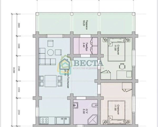 Дом двухэтажный, по фундаменту 5 х 12 метров, площадь 52 кв.м., конфигурация евротрешка, две спальни, кухня-гостиная со вторым светом, плюс большая терраса 15 кв.м., плюс крыльцо 6,1 кв.м.