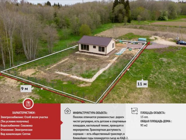 Покупай сейчас - плати потом! На данный объект доступна рассрочка на выгодных условиях Дом, тепло в котором, чувствуешь с каждым шагом! Продается одноэтажный каркасно-панельный дом (есть РАССРОЧКА), площадью 93 м² на участке 15 соток в ДНП "Сказка" Ломоносовского района. Участок правильной формы (3050 м) граничит с лесом, обеспечивая приватность и живописные виды круглый год. Дом построен по технологии PRE FAB с тщательной подготовкой домокомплекта в цеху, что гарантирует качество и энергоэффективность. Все коммуникации заведены: скважина глубиной 3234 м (второй водоносный слой), зимний водопровод на глубине 1,7 м, септик с двумя точками подвода под фундаментом, электричество от столба. Дом оснащен системой теплых полов с зональным регулированием, продуманной вентиляцией и обраткой горячего водоснабжения. Фундамент — 44 железобетонные сваи 150150 мм с гидроизоляцией, под ним — многослойная засыпка (геотекстиль, песок, щебень) для устойчивости. Утепление стен — 200 мм (перекрестное), под стяжкой — пеноплекс 50 мм и отражающая подложка. Высокие косые потолки визуально увеличивают пространство. Участок подготовлен для расширения: рядом два свободных надела, возможна постройка гостевого дома, бани, навеса для машин, бассейна 84 м, детской площадки или сада. Завезен плодородный грунт (200 м), высажены 20 туй, установлен временный забор из 3D-сетки. Поселок отличается ухоженностью: дороги чистят регулярно, есть детские и спортивные площадки, настольный теннис, проводятся мероприятия. Взносы — 1600 руб./мес. Транспортная доступность хорошая — есть общественный транспорт, в ближайшие годы планируется съезд на КАД-2. Цена — 7 300 000 руб. (АКЦИЯ при наличном расчете до конца июня). Дом построен для себя с вниманием к деталям — это готовое решение для комфортной жизни за городом без необходимости доработок. Для Покупателя будет ГБС (гарантия безопасной сделки) на 25млн. руб! Для организации просмотра и уточнения деталей пишите, звоните по указанному телефону, расскажу подробнее! Код пользователя: 174719 Номер в базе: 7775074