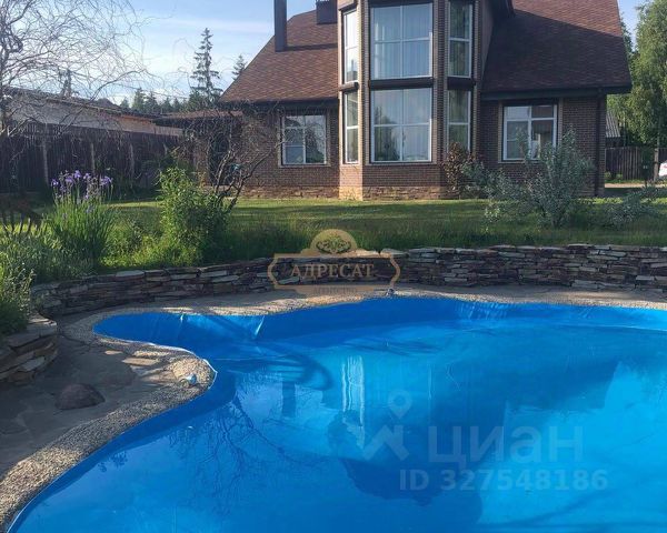 Продуман ландшафтный дизайн участка. Просторный бассейн, рулонный газон, высажена зеленая изгородь, молодой плодородный сад. Домик для барбекю с костровой зоной, выполнены пешеходные дорожки.